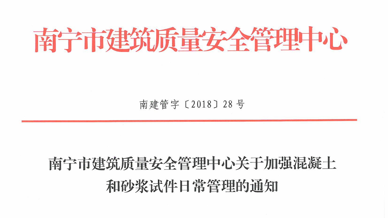 • 南寧市建筑質(zhì)量安全管理中心關于加強混凝土和砂漿試件日常管理的通知